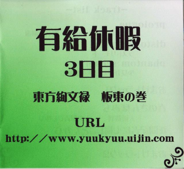 /ipfs/bafyb4ifk3u2sk3rmtg5uxxcghhvg2vao3k5aefjrf6jrppief6qrhqhyae/TLMC v5.5/[有給休暇]/2010.04.04 有給休暇3日目 [東方絢文禄 板東の巻]