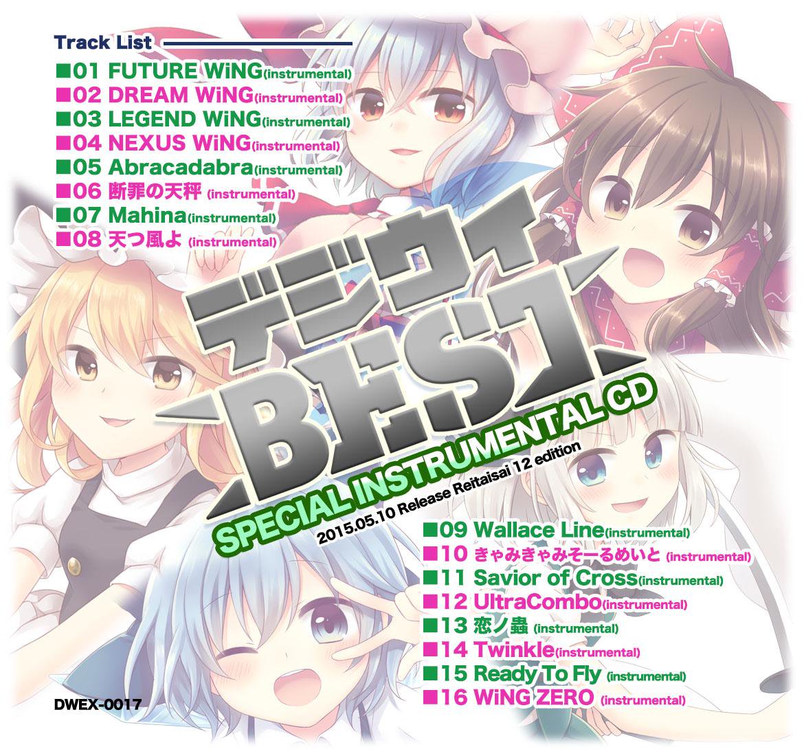 /ipfs/bafyb4ifk3u2sk3rmtg5uxxcghhvg2vao3k5aefjrf6jrppief6qrhqhyae/TLMC v5.5/[DiGiTAL WiNG]/2015.05.10 [DWEX-0017] デジウィ BEST SPECIAL INSTRUMENTAL CD [例大祭12]